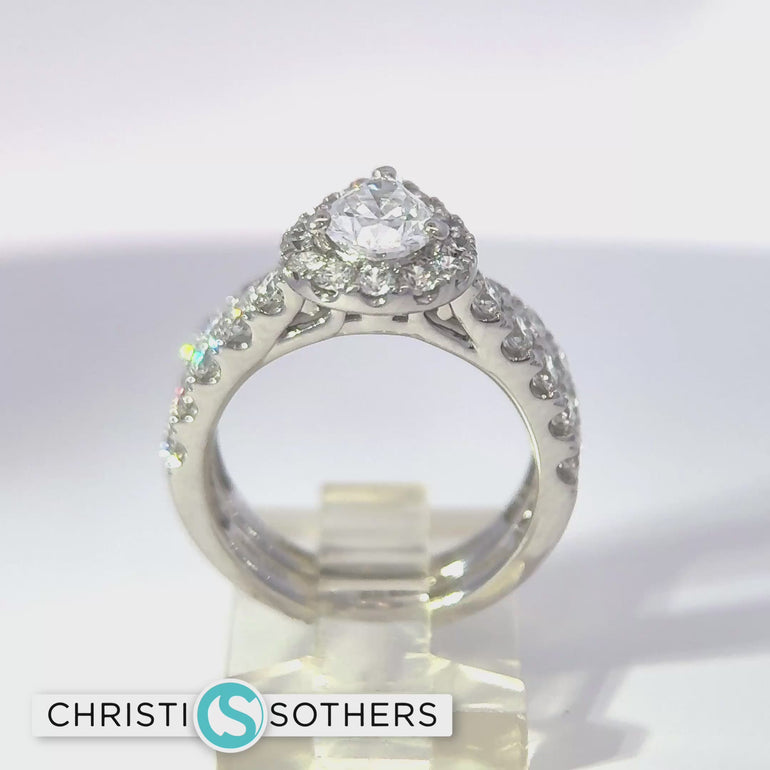 14KT White Gold 3.04ct Lab Pear Shape Diamond Engagement Ring & Band Set