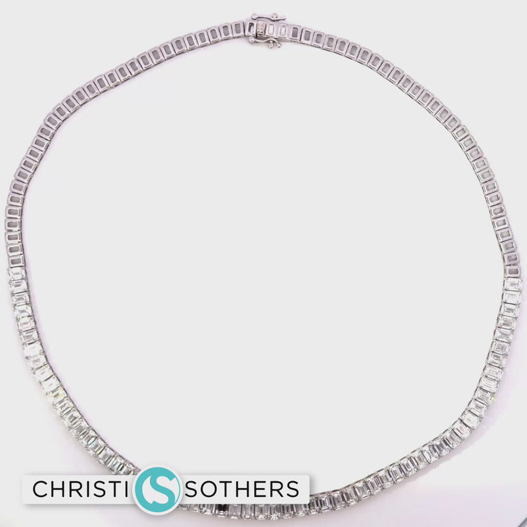 14KT White Gold 17.63ct Lab Emerald Cut Diamond Necklace