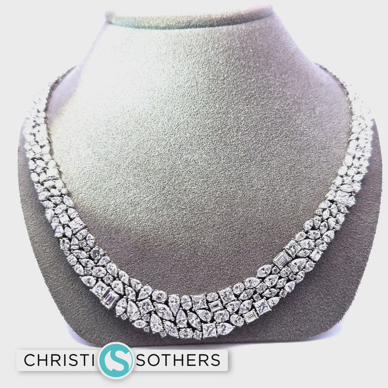 14KT White Gold 26.83ct Lab Multi-Diamond Cluster Necklace