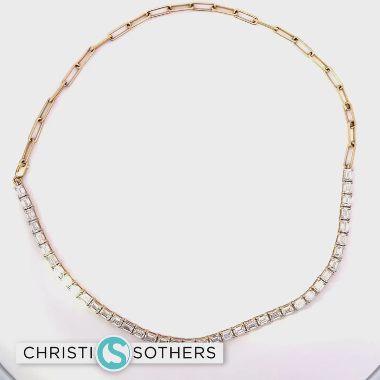 14KT Yellow Gold 12.01ct Lab Emerald Cut Diamond Necklace