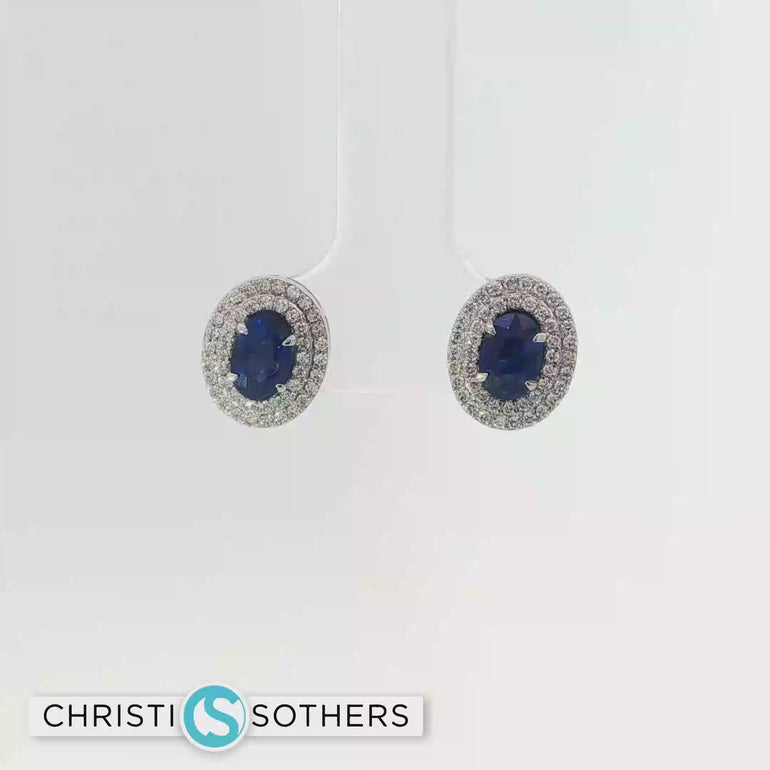 18KT White Gold Sapphire & Diamond Pushback Studs (1.28 cttw sapphires, 0.33 cttw diamonds)