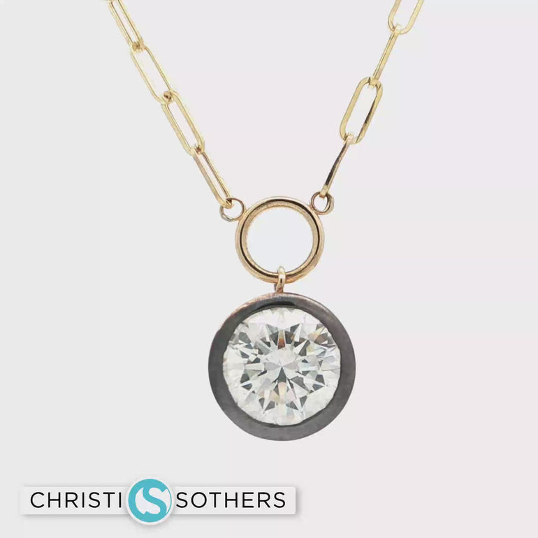 14KT Yellow Gold Bezel Necklace with Lab-Grown Round Brilliant Diamond (5.09 ct)