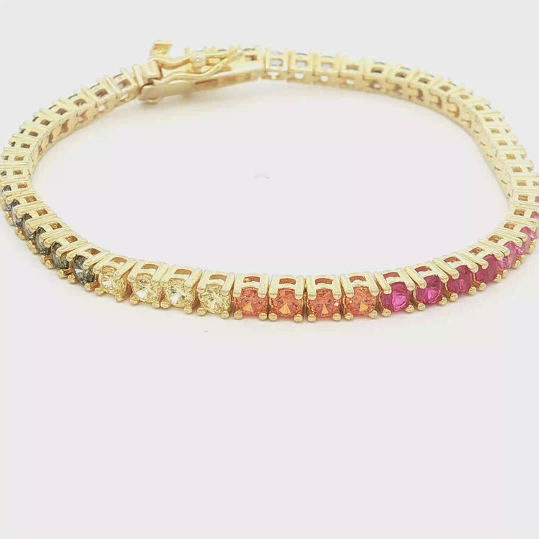 Gold-Plated Sterling Silver Multicolor CZ Tennis Bracelet (3 mm stones)