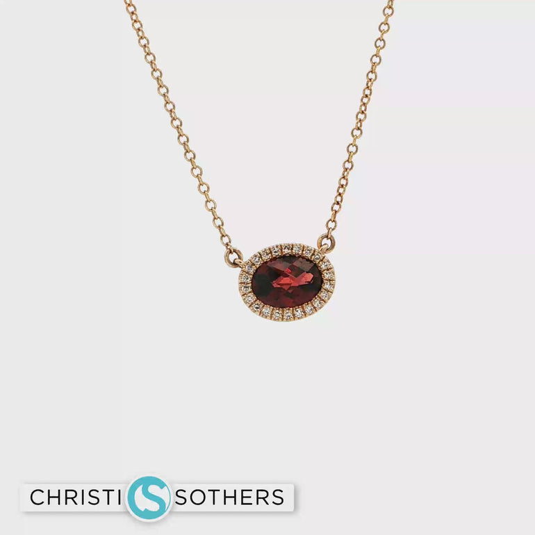 14KT Yellow Gold Oval Garnet Cabochon Charm Necklace with Diamond Accents (0.95 ct)