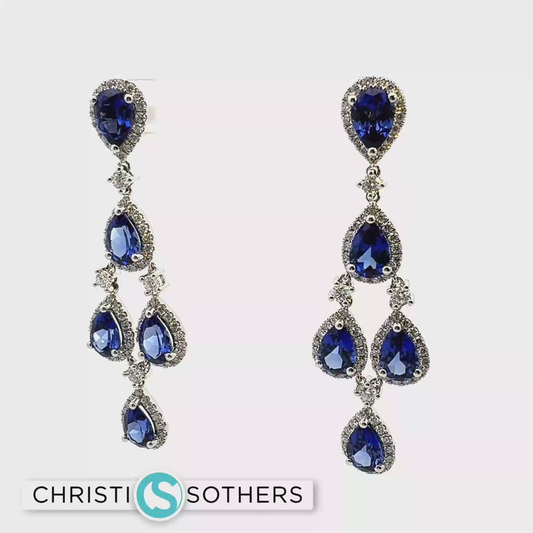 18KT White Gold Sapphire & Diamond Chandelier Earrings (12.22 cttw sapphires)