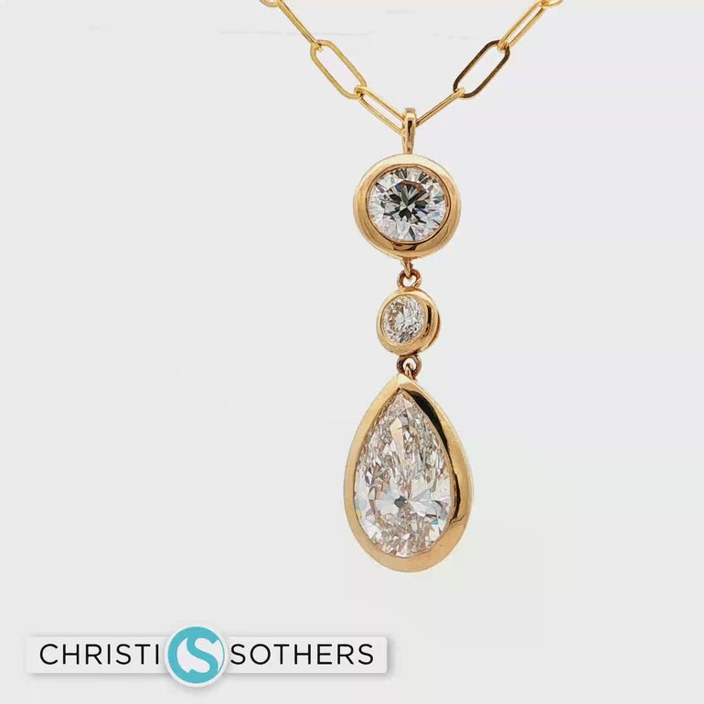 14KT Yellow Gold Triple-Stone Bezel Necklace with Lab-Grown Round & Pear Diamonds (4.04 cttw)