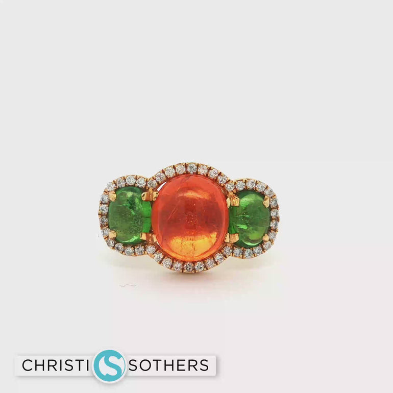 14KT Yellow Gold Multistone Cabochon Ring with Garnet, Tsavorite & Diamond Accents